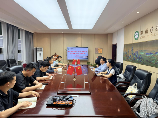 高院长对刘建生教授一行来我院指导表示热烈欢迎,并介绍了学院教学、科研及社会服务基本情况,同时介绍了太阳成集团tyc9728近年来在实践教学、社会服务上的做法和经验,指出要发挥学科优势,精准定位教学、科研和实践育人方向,在服务国家战略中铸魂育人。刘建生教授分享了团队以“实践—教学—科研”三维耦合、培养“知乡村、懂治理、善创新”等方面的实践育人做法和宝贵经验,以其团队所打造的国家级教学实践基地——南昌市新建区西岗村乡村振兴工作站为例,剖析“学在乡村”“研在乡村”“服务乡村”“乐在乡村”的新思路,介绍了多种校地合作模式和“校地双向奔赴”的经验,提出在教学中深度融入乡村振兴国家战略,增强学生服务乡村扎根基层的意识和实践能力。