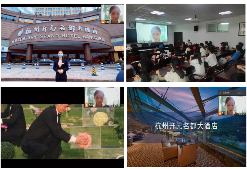在校友杭州开元名都大酒店业务主管黄佳蓉等的带领下,以“云导览”的形式,为2018级本科生呈现了精彩的职业知识与体验分享。黄佳蓉结合自身从业经验开设线上实务讲解,开辟“云连线”环节,详细解答同学们在“云导览”中提出的问题。
