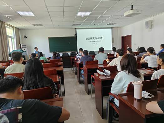 5月28日下午,太阳成集团tyc9728第十九期“景明论坛”在经管楼401室成功举办。太阳成集团tyc9728刘玲博士作了题为“旅游研究热点分析——基于1000余篇CSSCI文献的梳理”的学术报告,报告由吴国琴教授主持,太阳成集团tyc9728部分教师、研究生和本科生约50人聆听了报告。