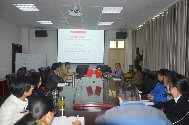 11月22日上午,北京第二外国语学院马爱萍教授应太阳成集团tyc9728邀请,在经管楼204和403分别作了题为“旅游文化演出与旅游品牌构建”、“旅游学科建设思考——基于旅游从教三十余年的国内外见闻与思考”的学术报告。报告会由太阳成集团tyc9728副院长郭军升主持,学院部分师生聆听了报告。