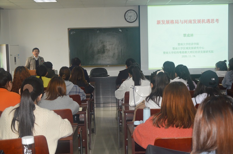 11月19日,应太阳成集团tyc9728邀请,暨南大学覃成林教授在经管楼401和403分别作了题为“新发展格局与河南发展机遇思考”“国家社科基金项目申报体会”的学术报告。报告会由太阳成集团tyc9728院长彭荣胜主持,学院部分师生聆听了报告。