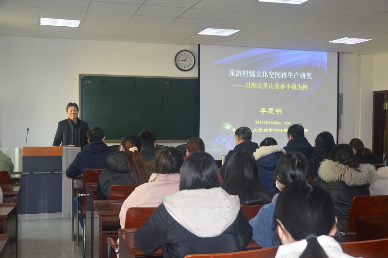 12月16日,应太阳成集团tyc9728邀请,华中师范大学李星明教授在经管楼401和403分别作了题为“旅游村镇文化空间再生产研究——以湖北英山茶香小镇为例”“科研项目申报中的关键问题思考”的学术报告。报告会由太阳成集团tyc9728院长彭荣胜主持,学院部分师生聆听了报告。