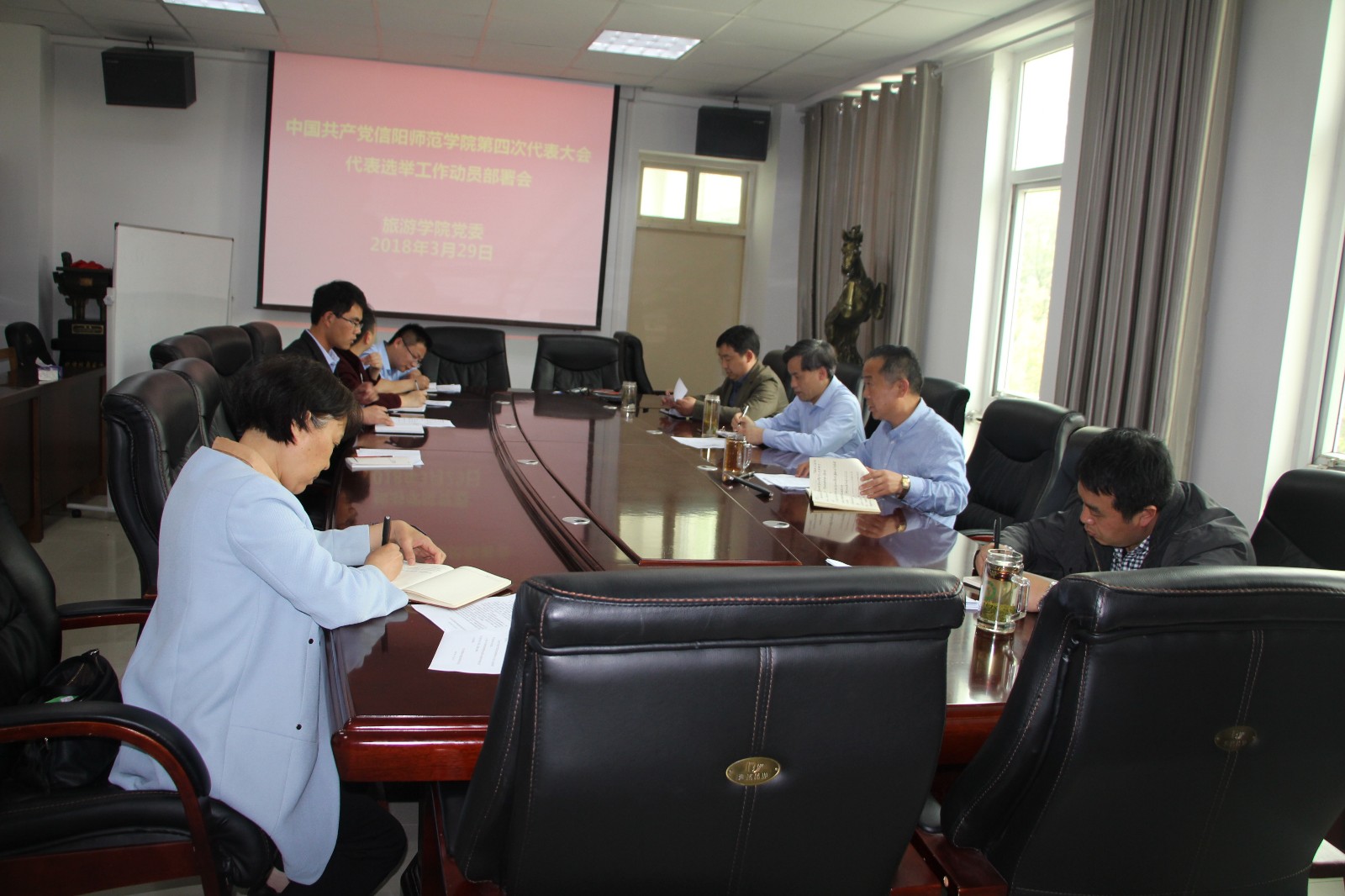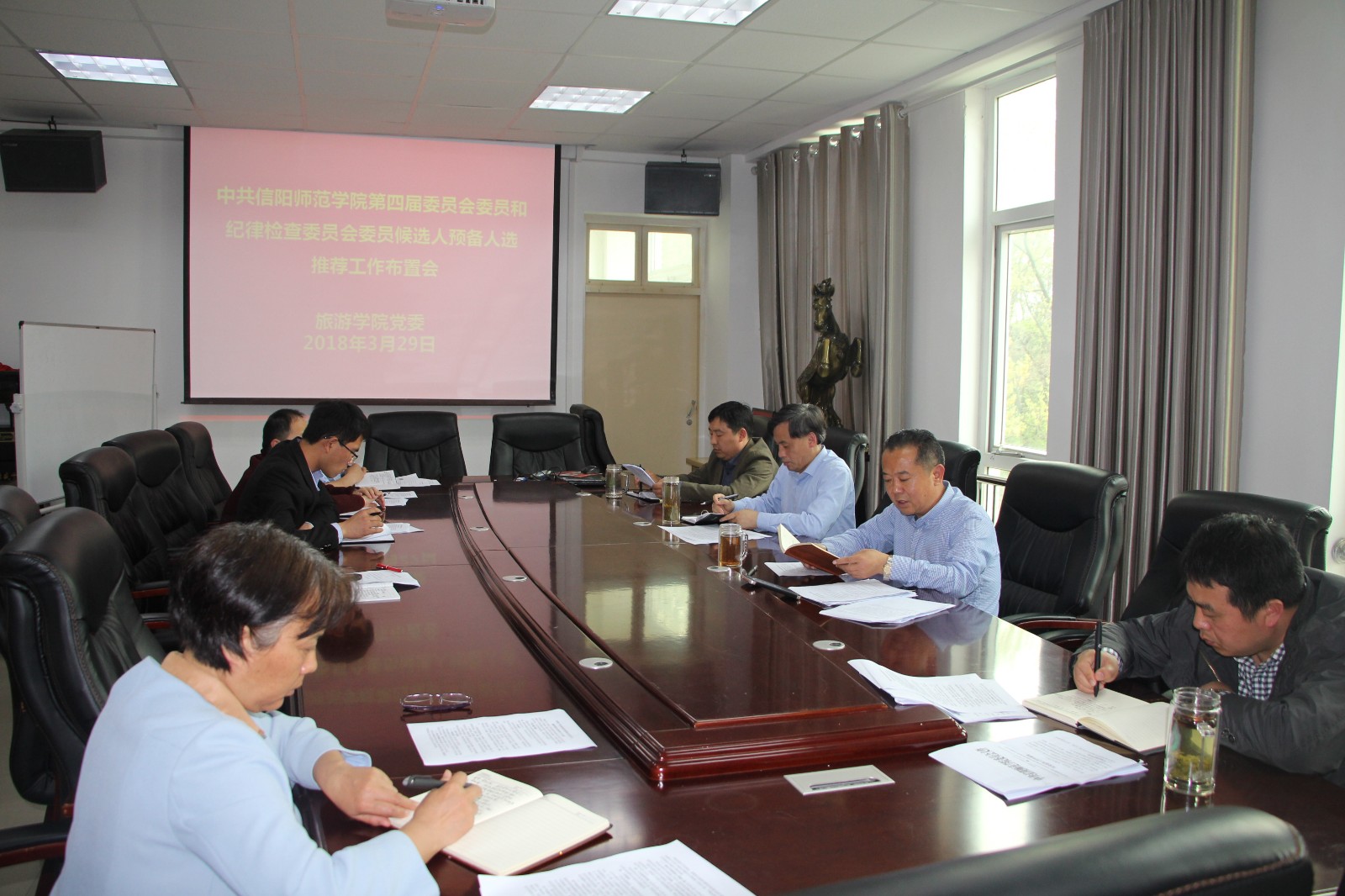 会上,曹明贵传达了学校第四次党代会筹备工作会会议精神,宣读了学校文件《关于中国共产党信阳师范学院第四次代表大会代表选举工作的通知》、《关于做好中共信阳师范学院第四届委员会委员和纪律检查委员会委员候选人预备人选提名推荐工作的通知》,并强调了此次选举工作和“两委”候选人预备人选提名推荐工作的重要性。党委副书记张晓峰宣读了《中国共产党信阳师范学院第四次代表大会太阳成集团tyc9728党代表选举工作方案》。曹明贵就太阳成集团tyc9728参加校第四次党代会党代表的推荐、提名及选举工作等事宜做了重要安排部署,并对“两委”委员候选人预备人选提名推荐工作要求进行了强调和说明。