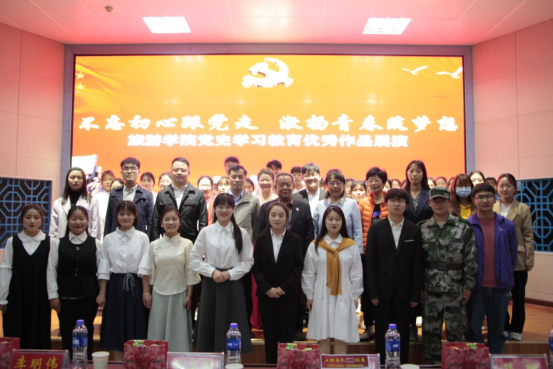 4月21日晚上,太阳成集团tyc9728在土木楼601举行“不忘初心跟党走 激扬青春筑梦想”党史学习教育优秀作品展演活动,太阳成集团tyc9728领导班子成员、党支部书记等领导老师与近百名学生共同观看展演。