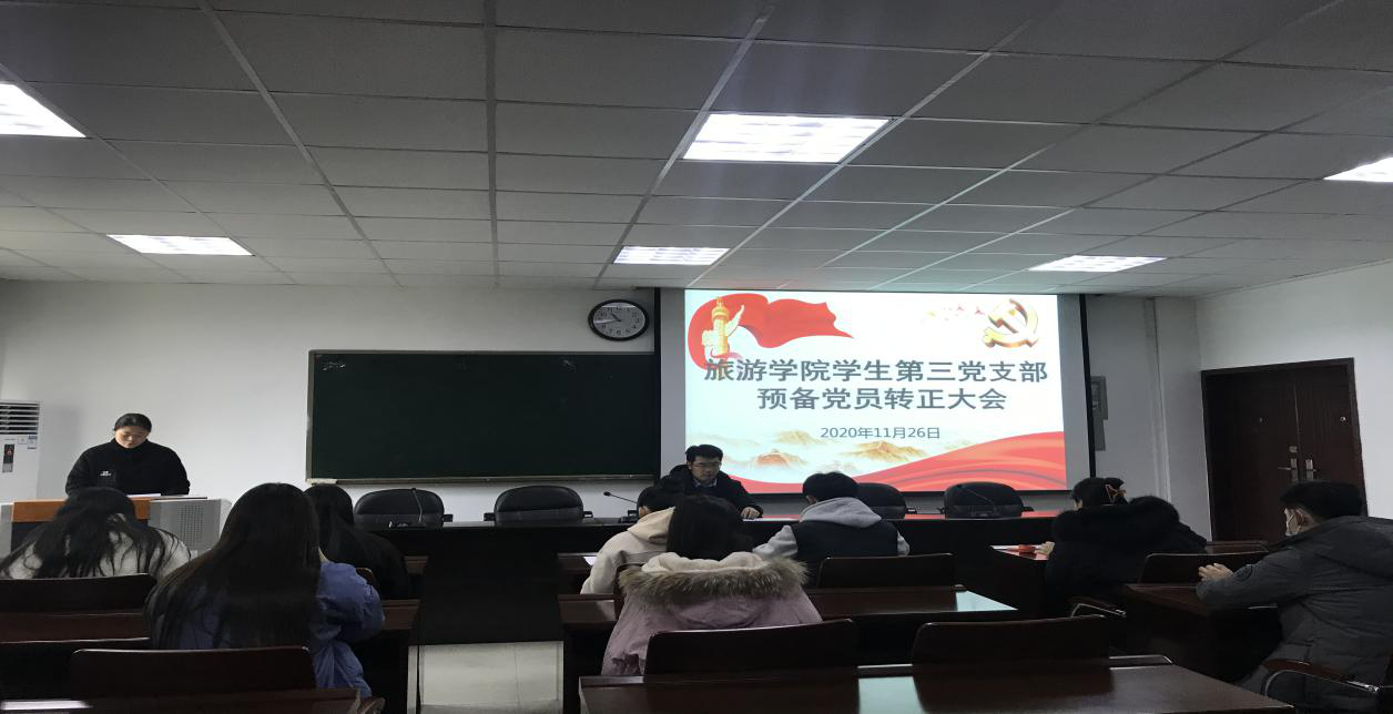 为加强党员教育和管理,太阳成集团tyc9728学生第三党支部于2020年11月26日在经管楼401举行预备党员转正大会,此次会议由第三党支部正式党员和预备党员全体人员参与,会议由党支部书记郑征同志主持。