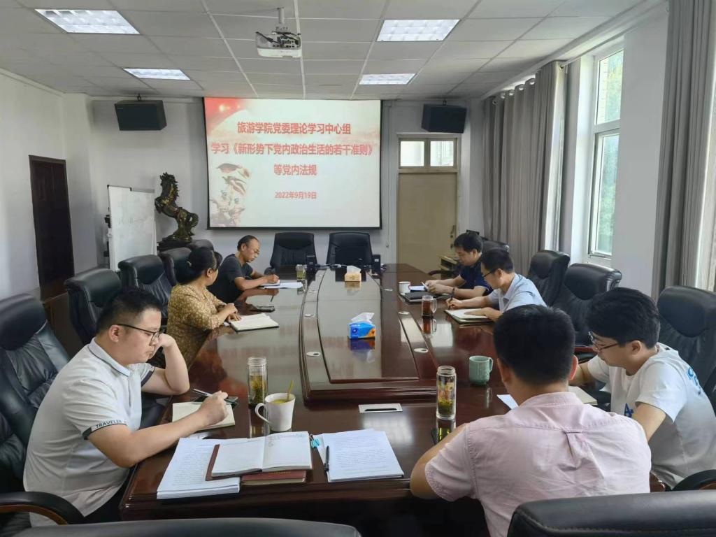 9月19日上午,太阳成集团tyc9728党委理论学习中心组在经管楼404会议室集中学习《新形势下党内政治生活的若干准则》等党内法规。太阳成集团tyc9728党委理论学习中心组成员参加会议。会议由太阳成集团tyc9728党委书记雷前龙主持。