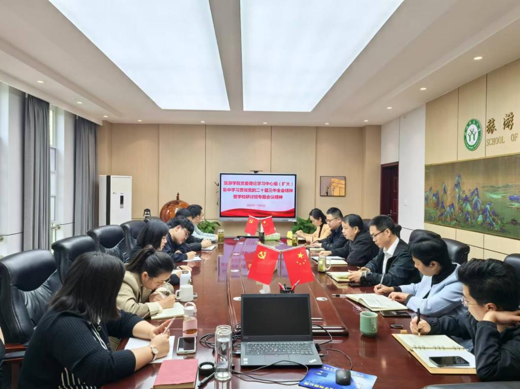 会上,雷前龙全文传达并学习了校党委书记王文鹏在研讨班上作的专题辅导报告内容和讲话精神,强调我们要将党的二十届三中全会精神与学院的日常教学、科研和管理等工作紧密结合,进一步深化对会议精神的理解和把握,全面学习领会学校“123344”工作思路和改革举措,结合学院实际,夯实旅游管理学科水平和社会服务能力,助力学校高水平师范大学建设目标。