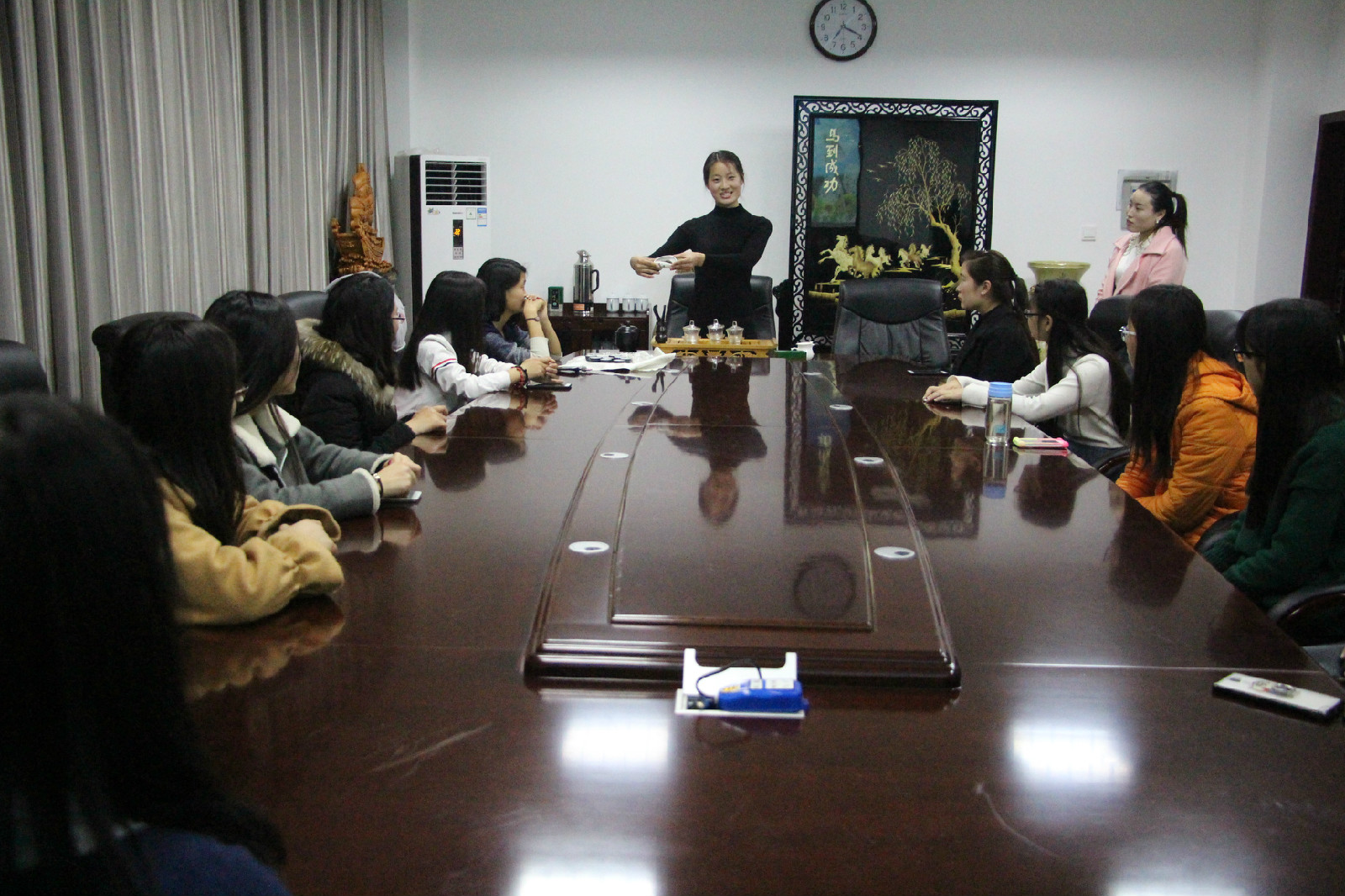 此次讲座以茶话会的形式展开,大四学子细致的茶文化知识讲解和优雅的茶艺表演给在座师生留下了深刻的印象。会中,大家畅所欲言,互相交流自己对茶文化的认识与理解,气氛轻松愉快。路璐对学子的学习生活表示深切关心,就如何提高在校学习质量,丰富课余生活以及处理好同学之间的关系等方面分析提出相应对策。