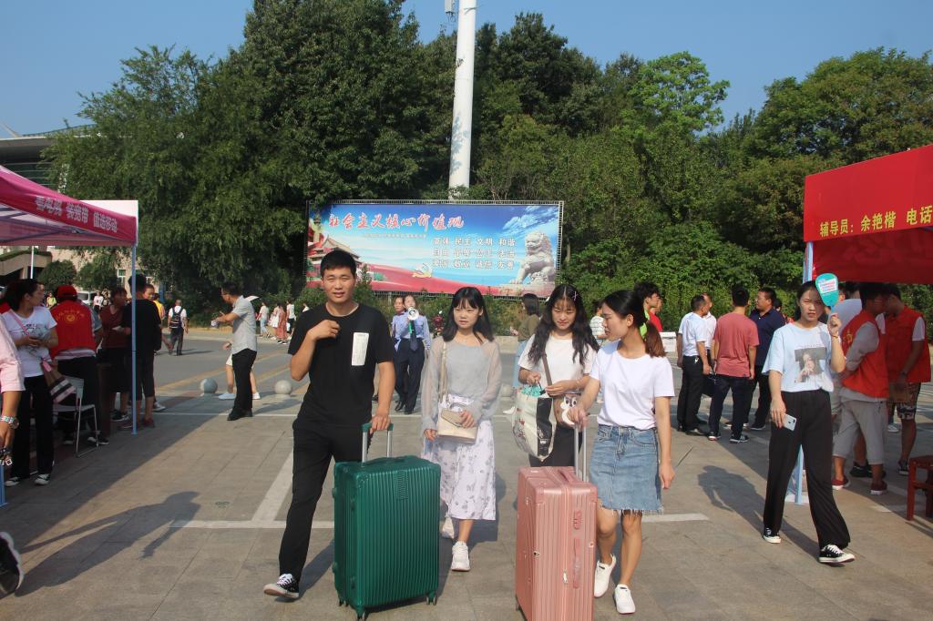 迎新工作如火如荼,到处都是忙碌的身影。我院在图书馆前设置了迎新点,19级辅导员甘忠涛老师耐心回答新生提出的各种问题,19级各班班代坐在指定位置面带微笑迎接着新生的到来,不仅为他们分配寝室,而且向他们分发宗教卡、入学须知手册、校园网使用说明以及银行代扣学费的注意事项等等。党员队伍戴着红帽、佩着党徽、身着马甲,服装整齐划一,神经抖擞。不少团委、学生会的学长学姐也主动为新生拎行李,一路谈笑风生。新生细声地叫着“学长学姐”,老生们也开心地介绍这介绍那。人头攒动,秩序井然。