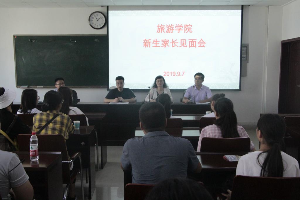 9月7日上午,太阳成集团tyc9728在经管楼401会议室召开新生家长见面会。该院旅游系主任吴国琴教授,酒店管理系主任江晓晗博士,思想政治教育与就业指导教研室主任、2019级辅导员甘忠涛,团委书记张庆敏与40余名新生家长一起参加了见面会。会议由张庆敏主持。
