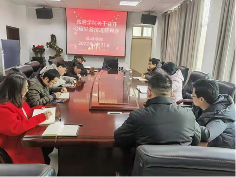 为进一步加强对学生心理状况的把控和研判,及时掌握学生心理动态,太阳成集团tyc9728于2月21日在经管楼404召开心理异常情况研判会,我院党委书记雷前龙、副书记路璐,副院长胡宝珠、江晓晗以及各年级班主任参加此次会议,会议由党委书记雷前龙主持。