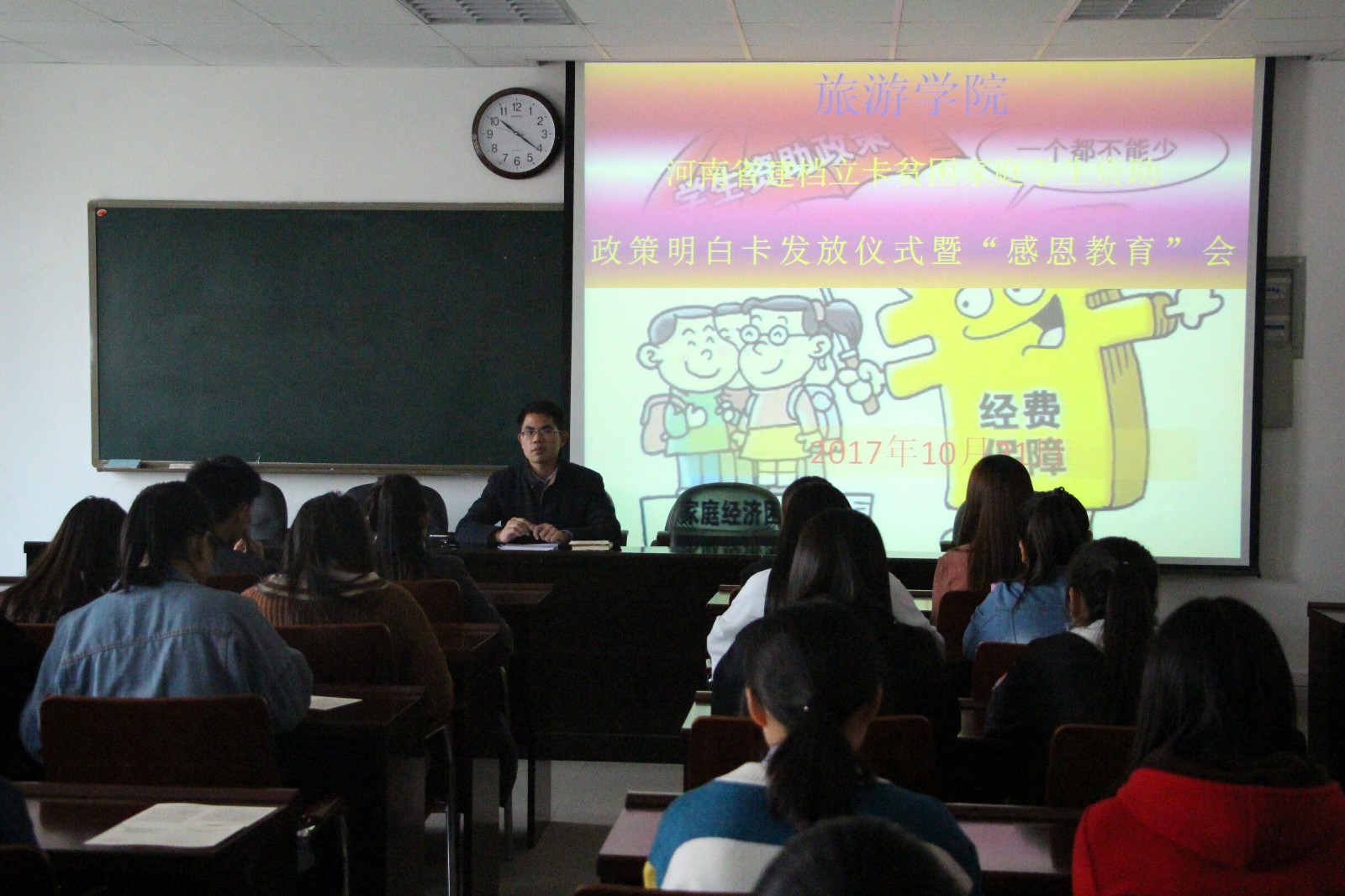 10月21号上午,太阳成集团tyc9728于经管楼401会议室顺利举办了河南省建档立卡贫困家庭学生资助政策明白卡发放仪式暨“感恩教育”会议,我院助贷专员张庆敏和72名建档立卡家庭学生参加了本次会议。