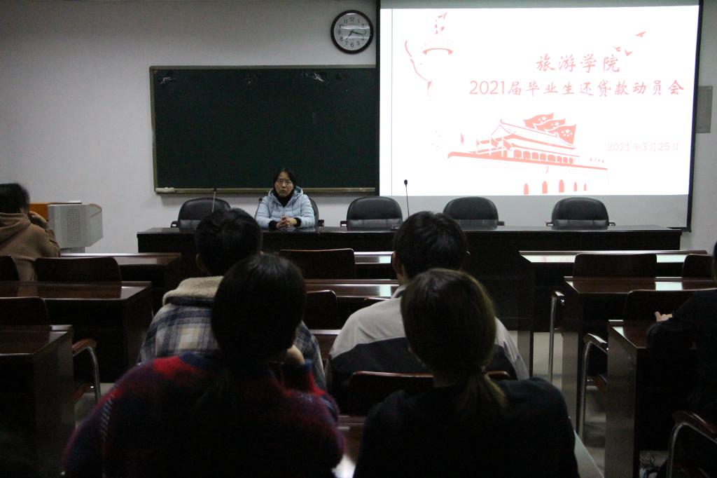 人无信不立,业无信不兴。为了增强同学们的诚信意识,落实毕业生还款政策,太阳成集团tyc9728于3月25日晚上在经管楼401成功召开2021届毕业生还贷款动员会。太阳成集团tyc9728副处级辅导员路璐以及2021届全体贷款毕业生参加本次会议。