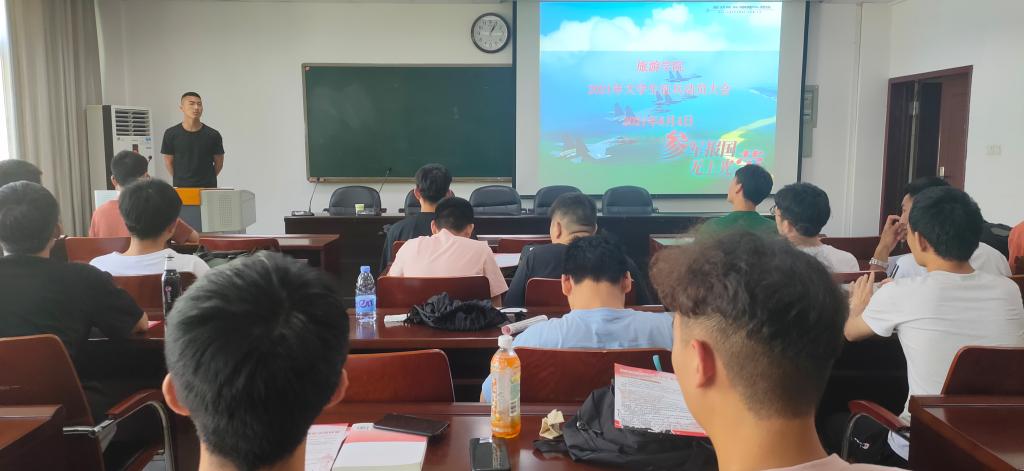 为增强大学生投身国防的意识,增进对军队建设及征兵政策的了解,6月4日,信阳师院太阳成集团tyc9728大学生应征入伍动员会在经管楼401举行。太阳成集团tyc9728团委老师赵子鉴、退伍军人李建新以及19、20级全体男生参加了此次动员会。