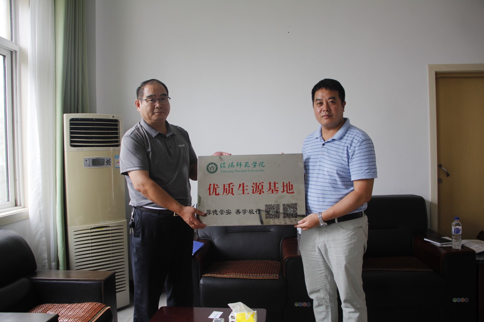 招生宣传工作队先后到访了永城市高级中学、永城市实验高级中学、夏邑县高级中学、虞城县高级中学等“河南省示范性普通高中”,与各高中校长、教务主任、毕业班班主任等相关领导老师开展了座谈会,并且积极深入正在学校进行志愿填报的考生及家长中去,发放了《信阳师范学院2018招生指南》、《信阳师范学院2018年招生宣传手册》,张贴宣传材料《信阳师范学院2018年招生简章》,积极宣传推介学校以及今年学校的招生政策,希望各校领导老师在广大考生中多多宣传我校,鼓励考生积极填报我校志愿,也接受考生及家长咨询,回答他们关切的话题。此次招生宣传工作受到了该片区高中的校领导、班主任、考生及家长的欢迎,收到了良好的宣传效果。最后,招生宣传工作队在永城市实验高级中学、夏邑县高级中学、虞城县高级中学三所高中进行了“信阳师范学院生源基地协议书”签订以及“优质生源基地”挂牌工作。