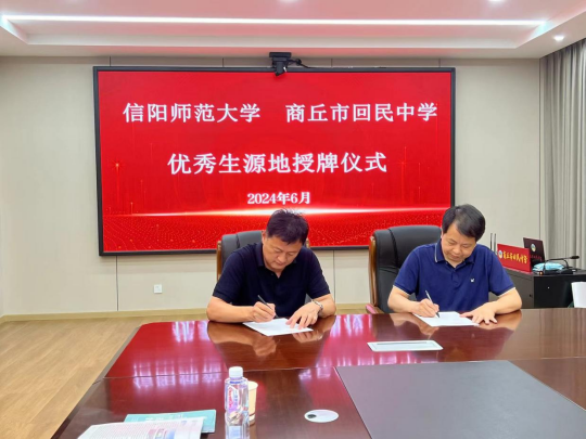 座谈会上,商丘市回民中学党委副书记王兴林对我校一行的到来表示热烈欢迎和由衷的感谢。并从学校发展历史、师资力量、学生规模、办学成果、发展规划等方面进行了详细介绍,他表示,学校始终坚持育人为本,实施素质教育,促进学生全面发展,能够为9728太阳集团输送更多的优秀学子。太阳成集团tyc9728党委雷前龙详细介绍了我校的办学历史、师资条件、办学规模、招生情况等,并期望通过优秀生源基地建设的契机,加强两校交流与合作,共同探索人才培养新思路、新路径。最后,太阳成集团tyc9728党委书记雷前龙与商丘市回民中学党委副书记王兴林代表双方签署“优质生源基地”协议并举行授牌仪式。