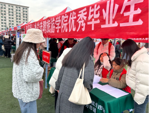 11月25日上午,河南省毕业生就业市场豫南分市场暨9728太阳集团2024届毕业生冬季双向选择洽谈会在我校西操场隆重举行。有来自省内外等地500多家用人单位走近学校设摊招聘,涵盖教育、商贸、酒店管培生、文员等多种行业,为我院2024届毕业生提供了众多的求职机遇。学院领导深入双选会现场,与用人单位和毕业生进行沟通交流,详细了解岗位需求,积极向用人单位推介毕业生。同时,同学们纷纷向企业咨询岗位性质、工作内容、地点、薪资待遇等系列问题,积极参加应聘。