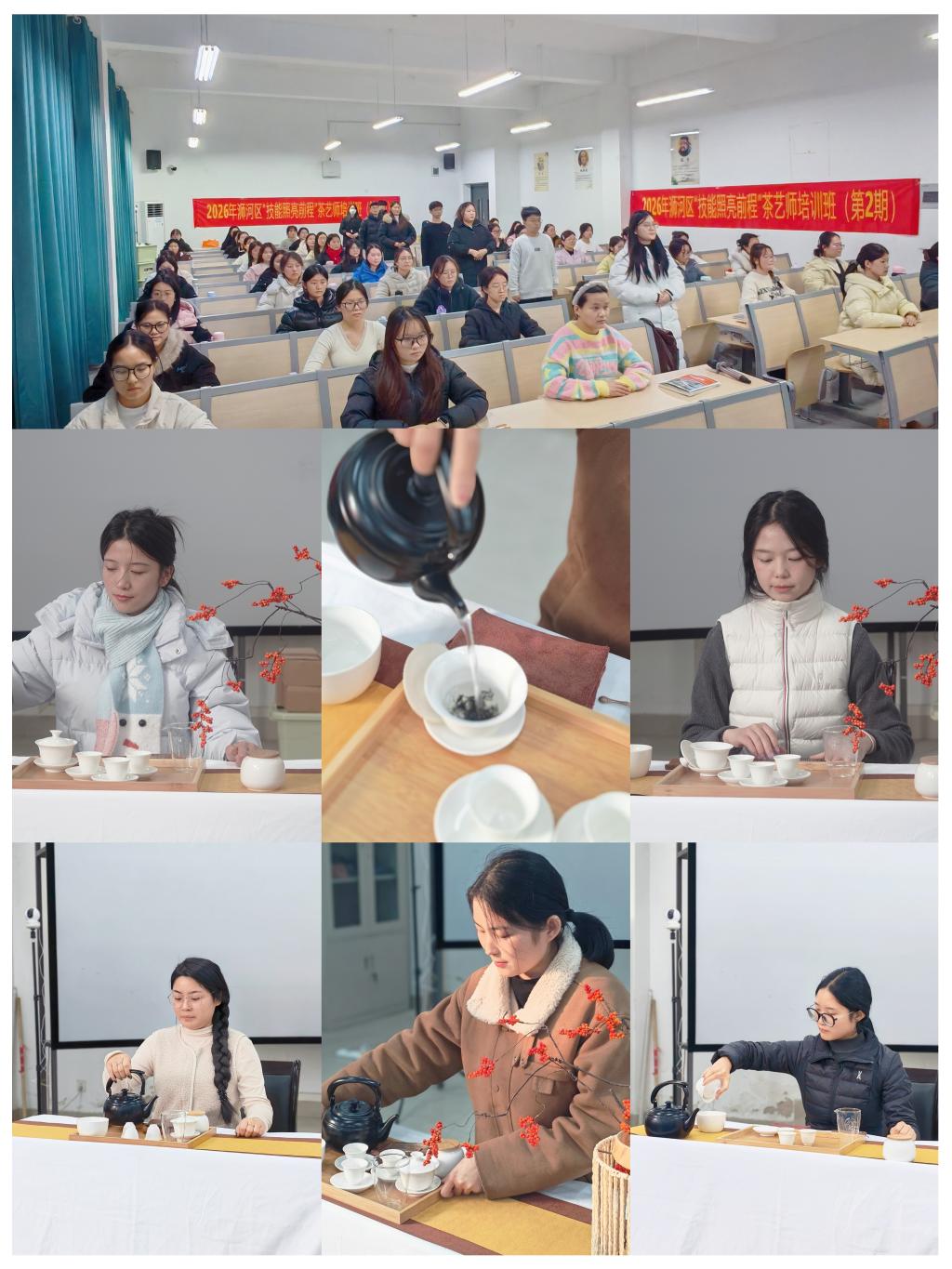 深入贯彻人才强国战略,弘扬中华优秀传统茶文化,推动茶旅融合高质量发展,助力乡村振兴。1月3日,由信阳市人力资源和社会保障局、太阳成集团tyc9728、信阳博文职业培训学院承办的信阳市2026年“人人持证,技能河南”高级茶艺师培训班在太阳成集团tyc9728顺利开班。首期培训吸引了一校两区2022级旅游管理、酒店管理等专业共100余名学生参加,培训合格后获得高级茶艺师证书。