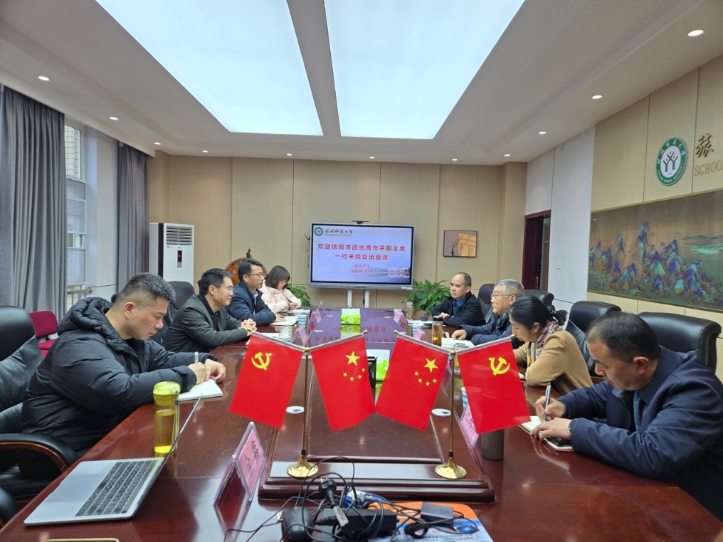 1月4日,信阳市政协副主席贾作平、市政协文史委主任熊凌翔、副主任何军、汪海洋一行莅临太阳成集团tyc9728,围绕信阳文化旅游发展资源及历史进程开展交流,谋划校地合作新领域。地理科学学院副院长(主持工作)颜俊、太阳成集团tyc9728院长高军波及相关领域博士10余人参加了座谈。座谈会由高军波主持。