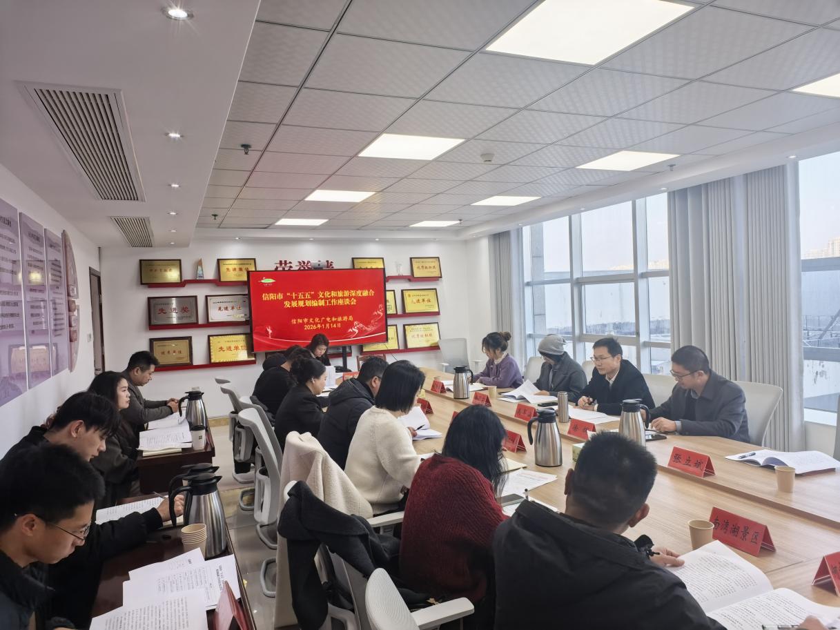 1月14日,信阳市“十五五”文化和旅游深度融合发展规划编制座谈会在市文广旅局420会议室召开。太阳成集团tyc9728院长高军波教授及规划编制团队出席会议,市文广旅局副局长徐辉、浉河区、平桥区、羊山新区文广旅局、鸡公山管理区、南湾湖风景区文旅部负责人,以及鸡公山景区、南湾湖景区、何家寨露营基地、文新茶村、见山咖啡、云雀咖啡等企业主管共计30余人参与会议,座谈会由徐辉主持。