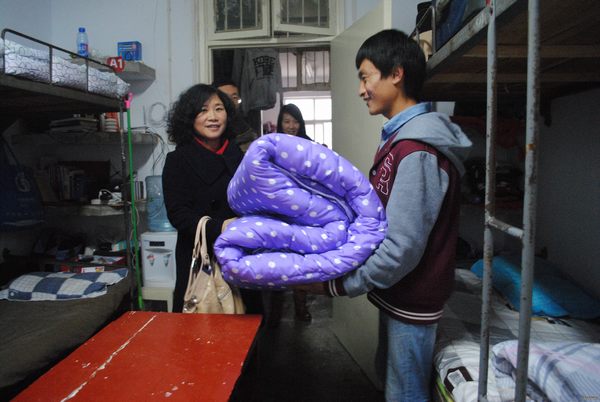 温馨呵护,情达八方学子;真切关怀,爱满工管家园。为响应学校号召,使学生度过一个更加舒适的暖冬,12月2日,在我院院长曹明贵的带领下,党总支书记李保红,党总支副书记李辉,党总支干事李梅,团总支书记周明成等人深入学生宿舍,嘘寒问暖,为困难学生发放过冬棉被。