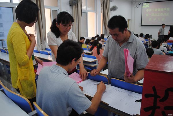 5月24日下午5点,工商管理学院在社科楼415教室召开中共工商管理学院第一届总支委员会选举大会。校党委组织部正处级组织员曾伏虎、组织科科长杨轶中亲临大会现场,工商管理学院教工支部和学生支部正式党员参与了此次选举,大会由工商管理学院院长曹明贵主持。