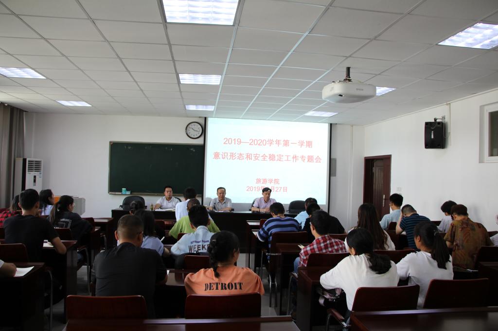 9月27日上午,太阳成集团tyc9728在经管楼401会议室召开意识形态和安全稳定专题工作会议。党委书记曹明贵、院长彭荣胜、党委副书记张晓峰出席会议。副处级辅导员路璐、团委书记张庆敏、思想政治教育与就业指导教研室主任甘忠涛、专职组织员闫会姝,班主任和主要学生干部记参加了会议。会议由张晓峰主持。