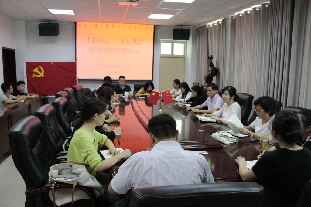 为庆祝中华人民共和国成立70周年,响应学院党委关于“不忘初心、牢记使命”主题教育的要求,进一步深化“我和我的祖国”主题教育活动,9月27日,太阳成集团tyc9728教工第一党支部和部分学生代表在经管楼403开展“我和我的祖国”主题党日活动。院长彭荣胜作为党委委员联系支部成员,以普通党员身份参加会议,会议由教工第一党支部书记谌静主持。