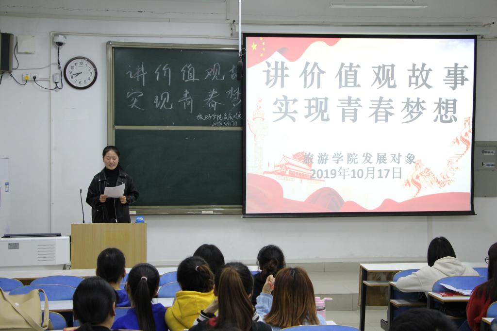 为发挥优秀学生党员榜样示范作用,帮助新一期发展对象进一步端正入党动机,10月17日,太阳成集团tyc9728于经管楼204举办主题为“讲价值观故事,实现青春梦想”的示范教育活动,我院正式党员郭明月、仝爽爽、贾蒙蒙和本次发展对象参加此次活动。