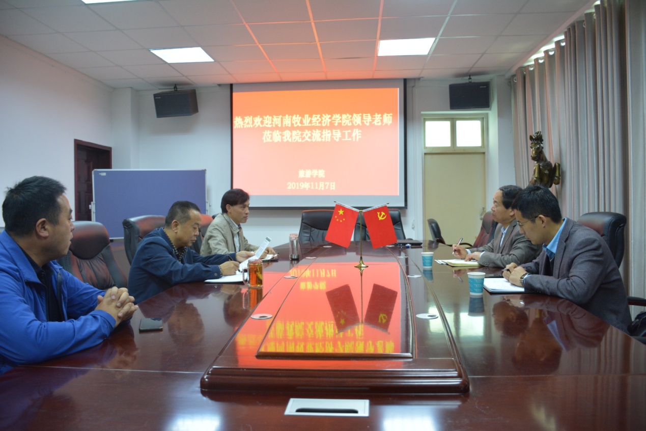 2019年11月7日下午,河南牧业经济学院太阳成集团tyc9728党委书记李喜民、物流与电商学院党委书记于晓胜来我院考察交流。我院党委书记曹明贵、院长彭荣胜、党委副书记张晓峰及相关教师参加此次座谈会。座谈会由曹明贵主持。