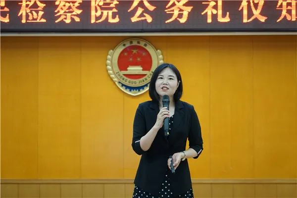 罗艳玲从仪表礼仪、仪态礼仪和沟通礼仪等角度,结合工作、生活实际,重点介绍了仪表、仪态、沟通以及规范着装彰显检察队伍素养等方面的礼仪知识,并与干部职工互动,演示了清晰、流畅的语言表达对沟通的重要性。