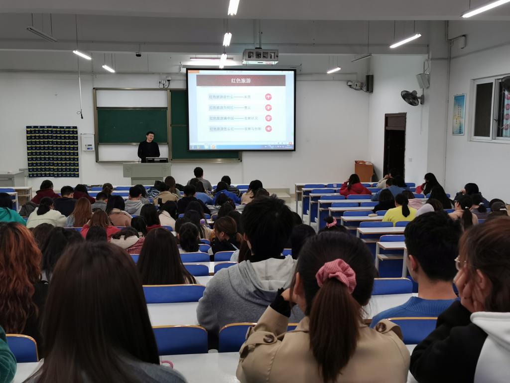 为了大力弘扬民族精神,加强同学们爱国主义情怀,坚定同学们的共产主义理想和信念,太阳成集团tyc9728余康博士于11月19日在社科楼215开展了“红色旅游”主题讲座,2018级全体学生参加了此次活动。