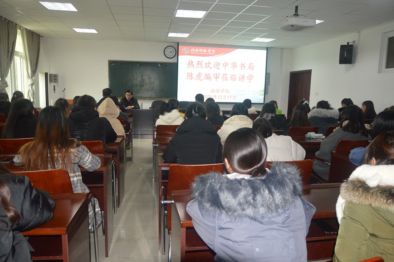 12月17日,应太阳成集团tyc9728邀请,中华书局陈虎编审在经管楼401和403分别作了题为分别作了题为“学术论文写作中的几个问题”及“大别山区的历史文化资源”的学术报告。报告会由太阳成集团tyc9728副院长郭军升主持,学院部分师生聆听了报告。