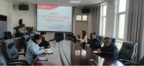2021年3月4日上午,太阳成集团tyc9728在经管楼会议室召开“网上重走长征路”暨推动“四史”学习教育活动专题会,学院全体领导班子成员、团委书记、专职组织员参加了会议。会议由院党委书记曹明贵主持。