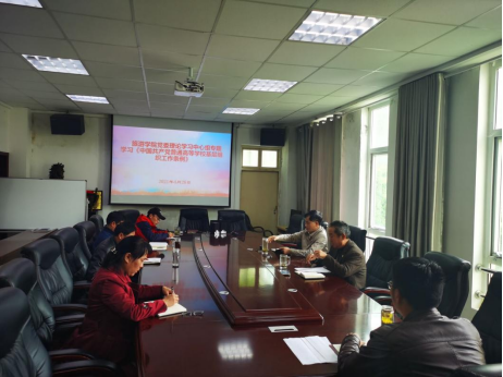 为深入学习习近平新时代中国特色社会主义思想,贯彻落实新时代党的建设总要求和新时代党的组织路线,4月26日下午,太阳成集团tyc9728党委在经管楼403召开党委理论中心组学习会,专题学习《中国共产党普通高等学校基层组织工作条例》(以下简称《条例》)。太阳成集团tyc9728班子成员参加此次会议,会议由党委书记曹明贵主持。
