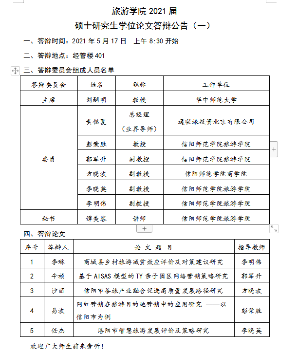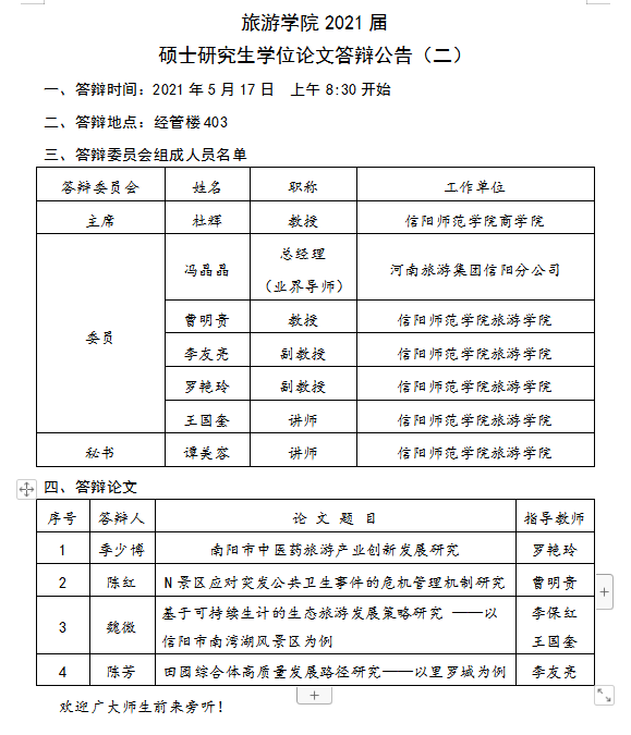 太阳成集团tyc97282021届硕士研究生学位论文答辩公告