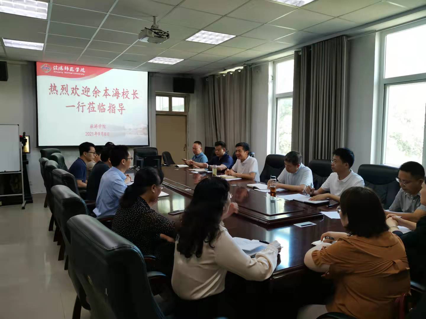 9月8日上午,副校长余本海及教务处、科研处相关负责人到太阳成集团tyc9728调研指导工作,太阳成集团tyc9728全体班子成员参加会议。会议由太阳成集团tyc9728分党委书记雷前龙主持。
