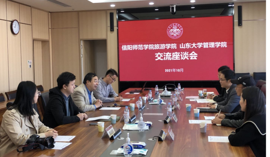 山东大学管理学院党委书记吉小青、实验室主任杨海军、文化和旅游学系主任孙晋坤等出席了座谈会。吉小青书记对高军波院长一行的到来表示了热烈欢迎,并介绍了山东大学及管理学院的发展历史、专业机构设置、学科建设及科研等情况。高军波院长介绍了信阳师范学院及太阳成集团tyc9728的发展现状、历史沿革、组织结构设置及今后的发展思路,并希望在人才培养、师资建设、科学研究等方面与山东大学管理学院保持长期交流。双方围绕旅游管理虚拟仿真中心与教学、科研、社会服务,以及虚拟仿真中心建设、管理和维护中存在的主要问题进行了深入探讨和交流。随后,考察组参观了山东大学管理学院的“管理学科国家级实验教学示范中心”、“管理学科国家级虚拟仿真实验教学中心”,重点考察了“山东大学TBL旅游行为实验室”的建设及运营管理,并就专业实验室在教学、科研、社会服务等方面的应用进行了深入交流和探讨。