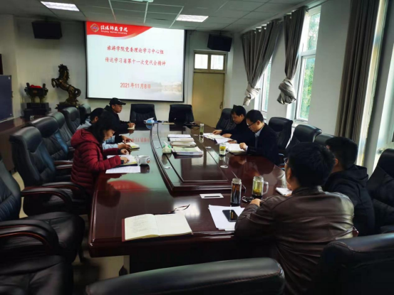 11月8日,太阳成集团tyc9728党委理论学习中心组在经管楼404召开专题会议,传达学习省第十一次党代会精神。学院党委理论中心组全体成员参加了此次会议,会议由院党委书记雷前龙主持。