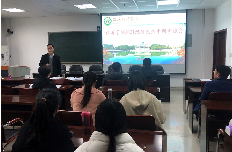 根据《信阳师范学院研究生开题与中期考核实施办法》相关要求,2月26日,太阳成集团tyc97282021级旅游管理专业硕士研究生中期考核会在经管楼401会议室举行。会议由李明伟博士主持,高军波教授任中期考核评委会主席,委员由院内4位导师组成,共有14名硕士研究生参加了本次考核。