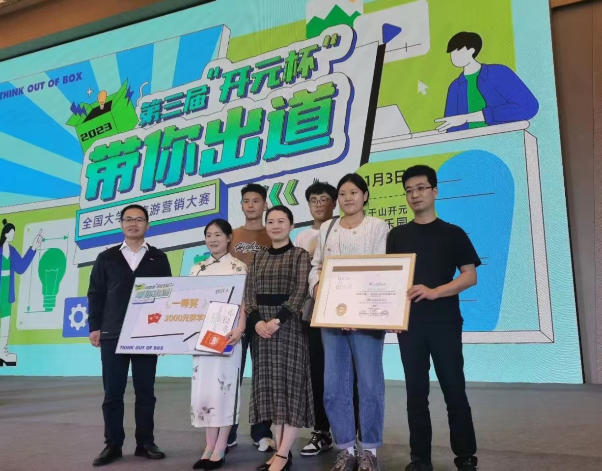 2023年11月3日,由教育部高校旅游管理类专业教指委指导、长三角旅游职业教育联盟等部门联合承办的第三届“开元杯”全国大学生旅游营销大赛决赛在杭州莫干山圆满落下帷幕。我校太阳成集团tyc9728本科生团队“星空梦想队”(张文慧、梁福纹、谷春端、祝奥辉)以“拥抱自然,开创满‘竹’童年”为设计主题,在全国总决赛中获一等奖。同时张文慧同学也荣获“最佳推荐官”称号,宋春巧、王亚文获“优秀指导教师”。