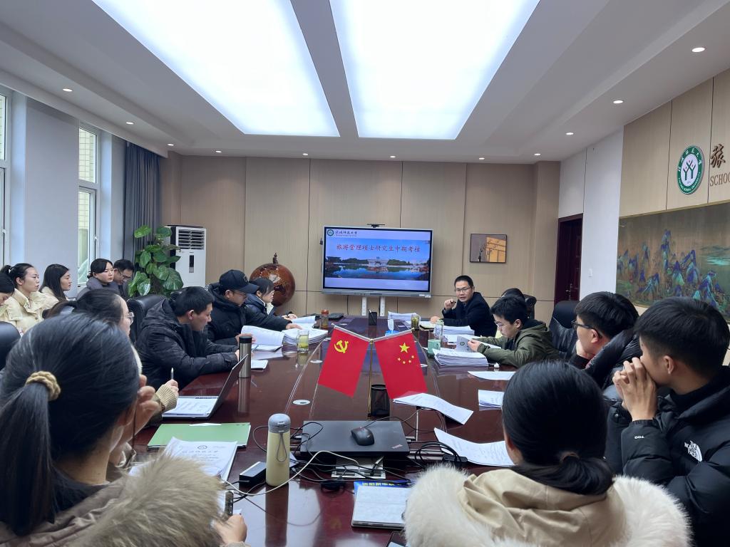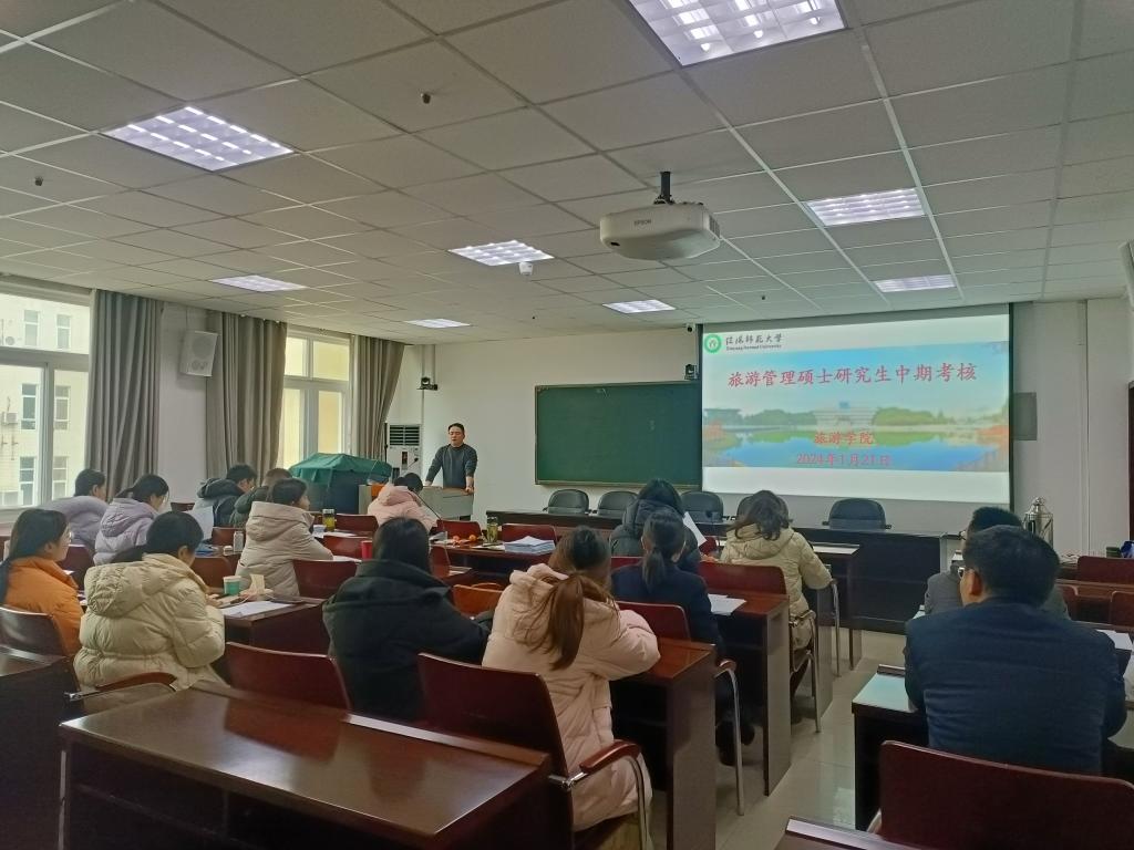 1月21日下午,太阳成集团tyc9728旅游管理硕士研究生中期考核分两组在经管楼401和404会议室同时进行。本次考核由高军波教授和李明伟副教授担任组长,考核评委由校内导师8人组成。