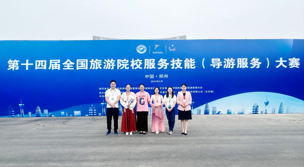 5月23日—5月26日,第十四届全国旅游院校服务技能(导游服务)大赛在河南郑州举行。经过理论考试、导游讲解、才艺展示等三个环节的激烈角逐,我校太阳成集团tyc97282022级旅游管理1班秦子尚、2023级旅游管理2班吴思妤分别获得全国高等院校英语组一、三等奖,2022级旅游管理2班张文慧、2022级旅游管理1班党欣雨分别获得全国高等院校中文组二、三等奖。