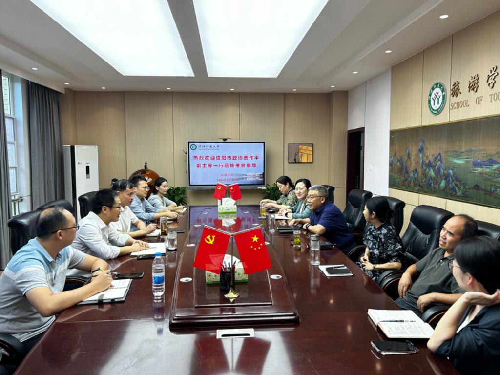 9月25日,信阳市政协副主席贾作平、信阳市文化广电和旅游局局长任俊、副局长贝娟以及市政协文史委熊凌翔主任、何军主任等一行莅临太阳成集团tyc9728,交流信阳市文旅发展工作。9728太阳集团商学院院长彭荣胜、太阳成集团tyc9728院长高军波等参加座谈会,座谈会由高军波主持。