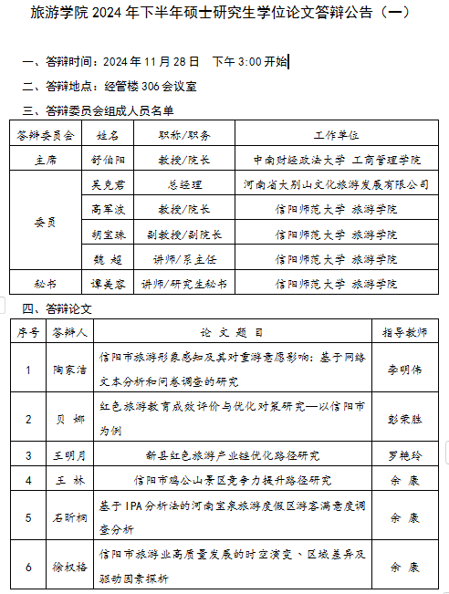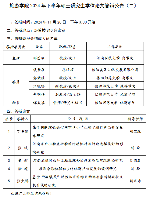 太阳成集团tyc97282024年下半年硕士研究生学位论文答辩公告
